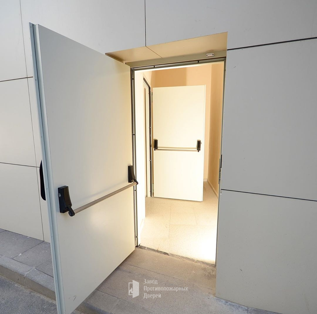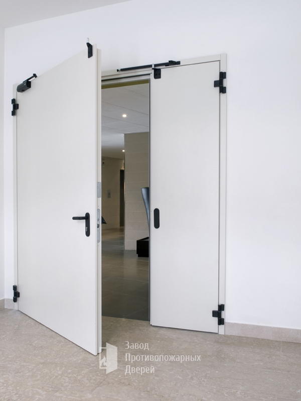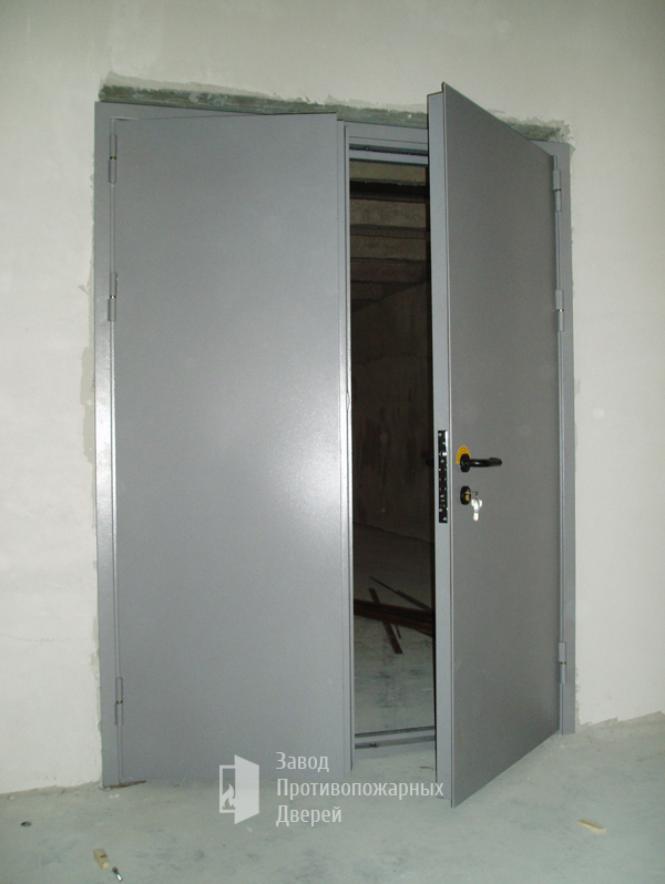 Еще один вариант - двухстворчатые металлические двери. Их, как правило, заказывают для установки на объектах такого типа, как производственные помещения и склады. Шанс возникновения пламени и его быстрого распространения достаточно велик, что приводит к тому, что владельцы подобного рода закрытых территорий должны грамотно позаботиться об обеспечении необходимого уровня пожарной безопасности. Рассматриваемая конструкция отлично справится с поставленной задачей благодаря высокому качеству материала дверного полотна и полного соответствия фиксирующих деталей правилам эксплуатации.