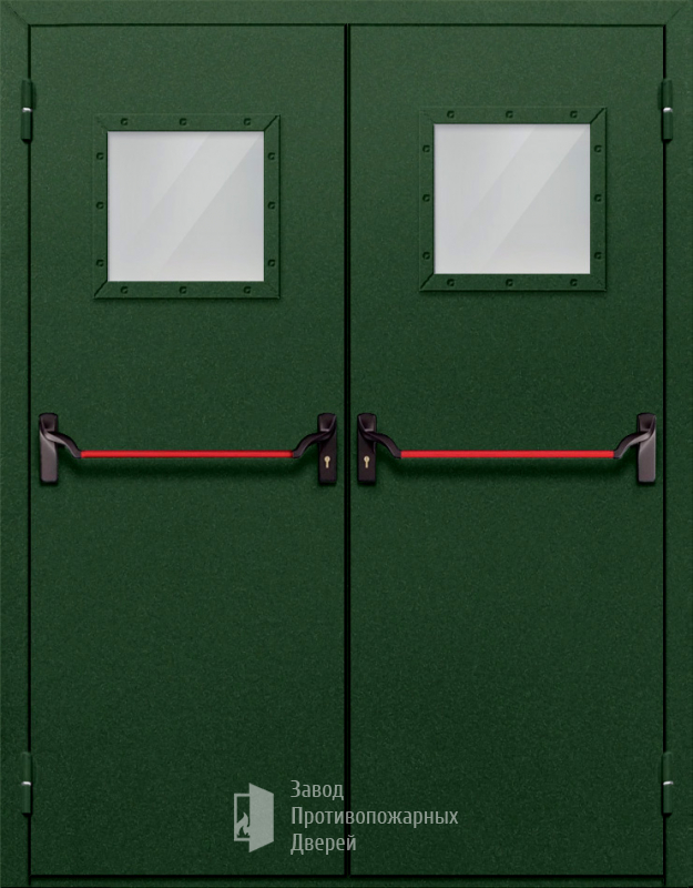Противопожарная Двупольная дверь с квадратным стеклом ДПМ-02-EIW60 с антипаникой |