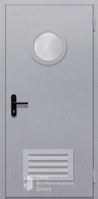 Маркировка Противопожарная Однопольная дверь с круглым стеклом ДПМ-01-EIW60 с решеткой